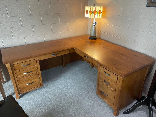 Introducing the Oak Corner Desk - a perfect amalgamation of functionality, style, and space-saving design. Crafted from quarter sawn oak wood, this exquisite corner desk is a must-have addition for any modern office or home workspace.